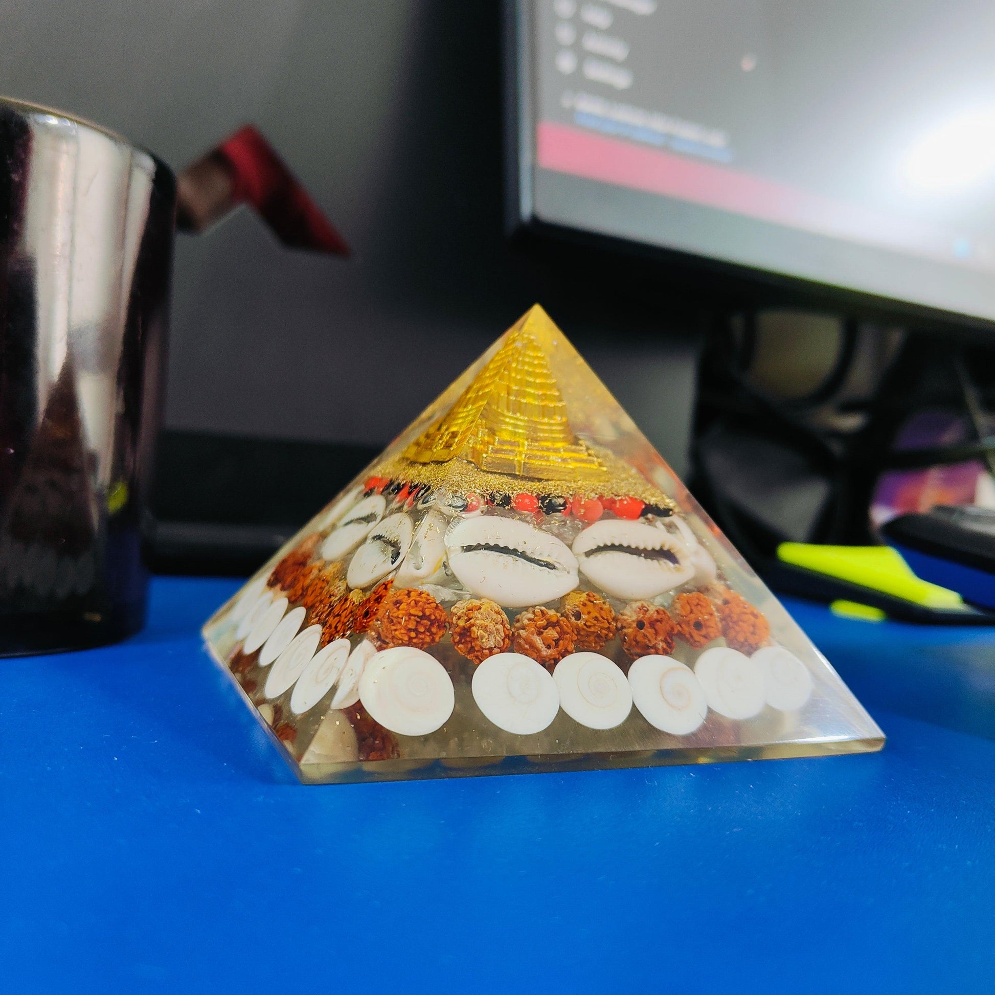 Transform your living or workspace with the powerful energy of the Dhan Laxmi Shree Yantra Crystal Pyramid, a revered symbol in Indian spirituality. Known for its ability to attract prosperity, wealth, and success, this sacred yantra embodies divine vibrations that promote spiritual growth and positive energy flow. Made from authentic, high-quality crystals, this pyramid is meticulously handcrafted to infuse your surroundings with its potent blessings.