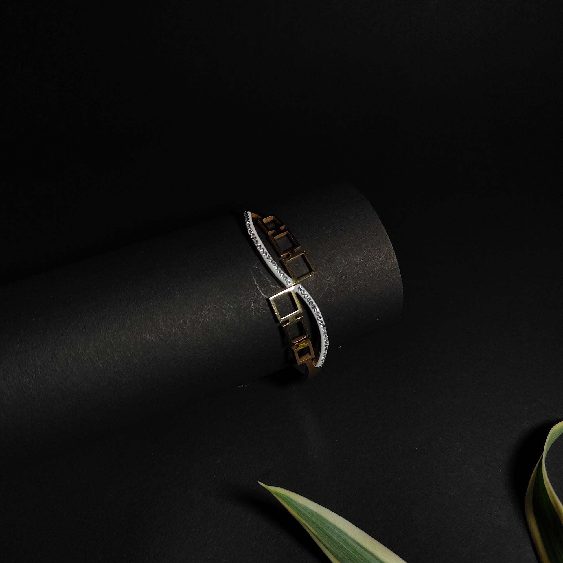 Edgy Gold Grid Bangle | Sparkling Square Link Bangle | Modern Minimalist Jewellery for Women